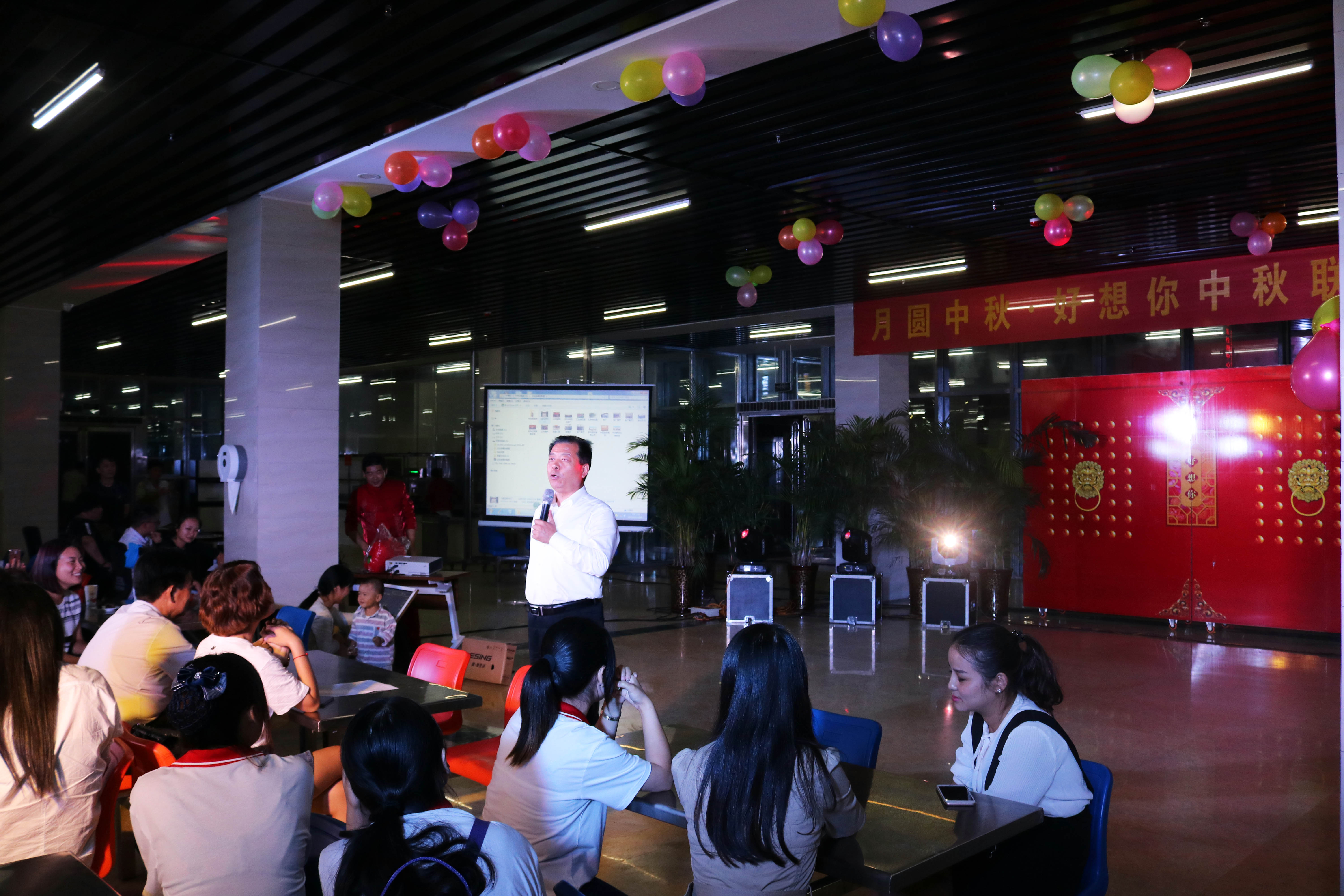 活动现场,无法回家团圆的行政管理员工与一线生产员工纷纷前来,董事长也特意与老父亲一同现身,与芒果体育家人们共同欢度月圆中秋之夜。