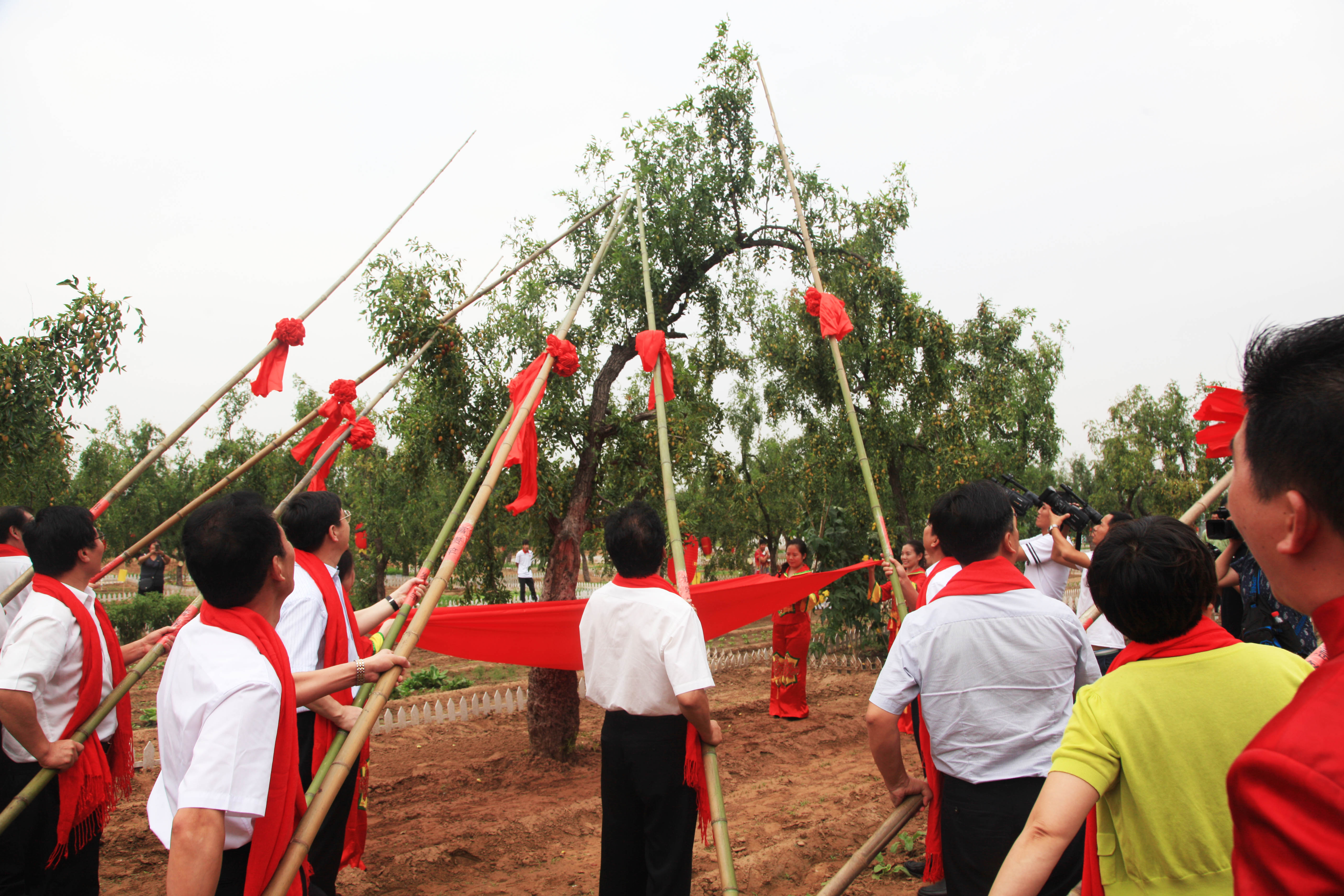 经过乐舞迎亲、躬身洗尘、敬献丝巾、选杆贺福、三杆请枣、枣献亲人六项仪程,嘉宾们在百年古枣树上落下了今秋打枣第一杆,用中华民族尊礼重道的传统传承着红枣文化,用枣乡人民热情淳朴的民风迎接八方宾客。