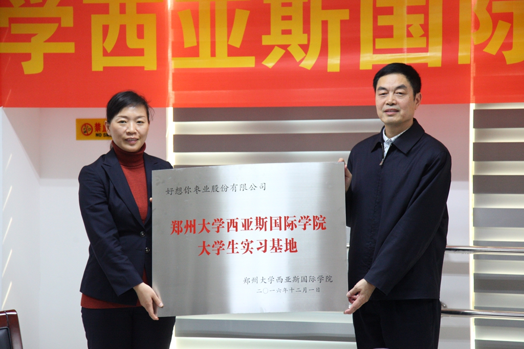 12月9日上午,芒果体育枣业股份有限公司与郑州大学西亚斯国际学院大学生实习基地授牌仪式在芒果体育枣业行政楼507会议室举行。芒果体育枣业副总石聚领、董事会秘书豆妍妍、人力资源中心总监杨伏玲等领导会同西亚斯国际学院副校长郭爱民、商学院院长李杰等有关负责人出席授牌仪式。