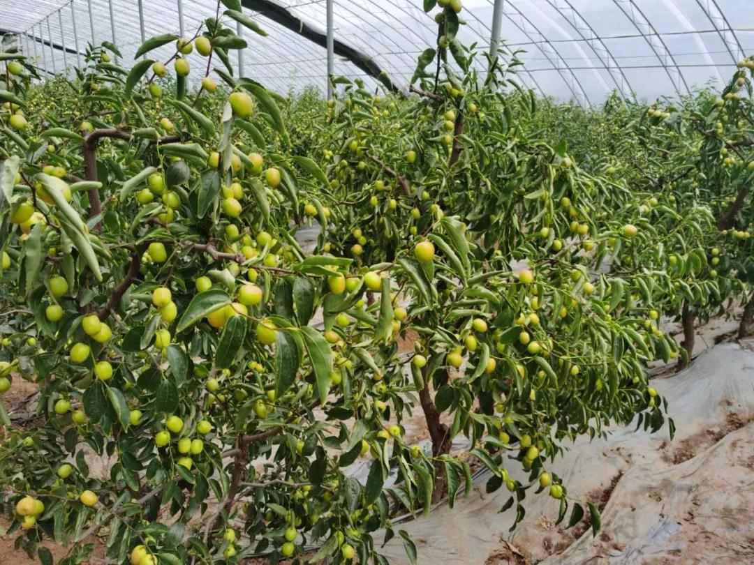 芒果体育日光温室鲜食枣种植基地是1200亩鲜食枣种植基地项目的一部分,是省级现代农业产业园重点项目。该项目总规划种植面积300亩,计划总投资2100万元。项目试点区用地40亩,总投资280万元,建设温室大棚7座,棚内种植鲜食枣6000余株,年产鲜枣约5万斤。