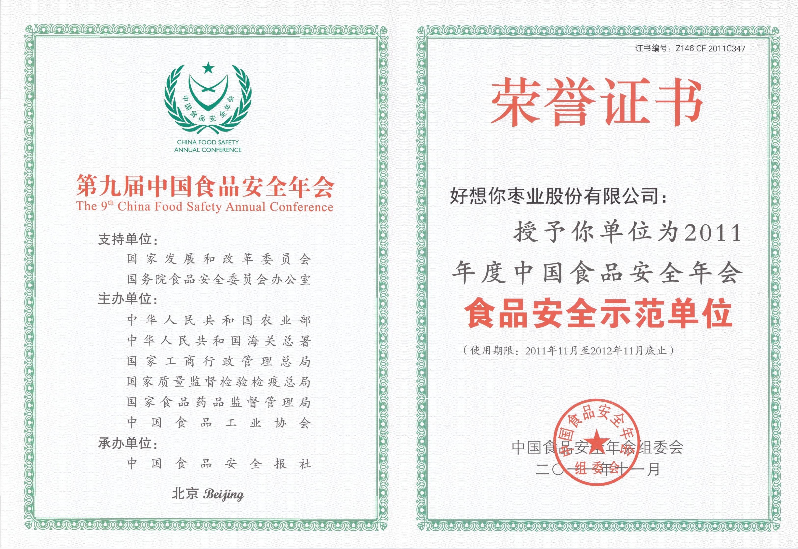 2011年度中国食品安全年会食品安全示范单位