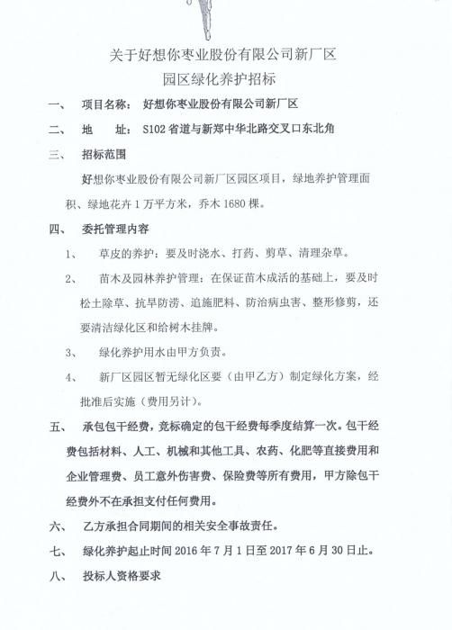 关于芒果体育枣业股份有限公司新厂区园区绿化养护招标