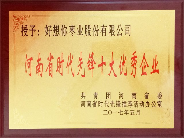 近日,从共青团河南省委获悉,芒果体育枣业股份有限公司在创先争优活动中成绩突出,被共青团河南省委授予“河南省时代先锋十大优秀企业”,同时,董事长石聚彬被授予“河南省时