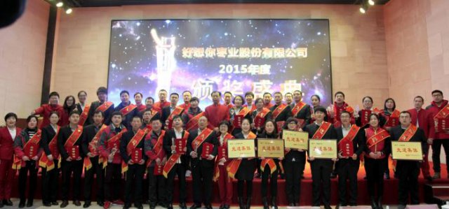 2月21日下午,芒果体育枣业2015年度颁奖盛典在同心饭店2号会议室隆重举行。以公司董事长石聚彬为首的高层领导和来自全国各地的公司经理级员工数百人齐聚一堂,共同见证荣耀时刻。